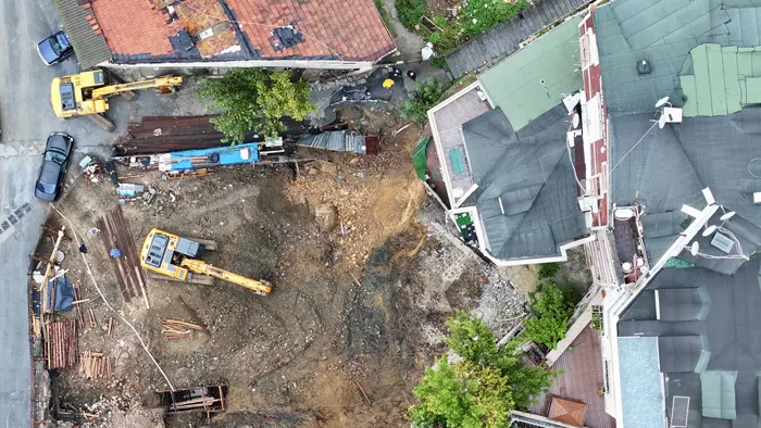 Merkez Mahallesi Bestekar İbrahimağa Sokak'ta bir binanın temel atma çalışmaları için yapılan kazı sırasında toprak kayması meydana geldi.