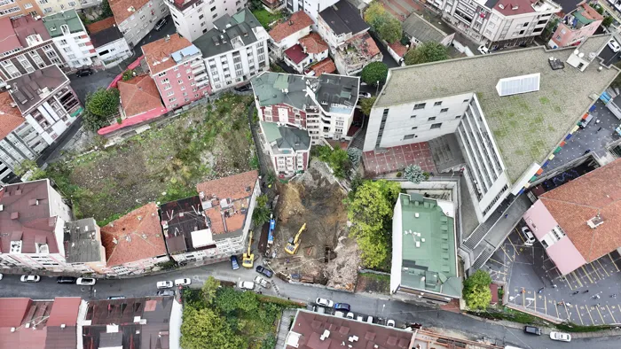 Çalışmaların yapıldığı arsanın arkasında bulunan dörder katlı iki binanın sakinleri, durumu fark etmeleri üzerine belediyeye haber verdi.