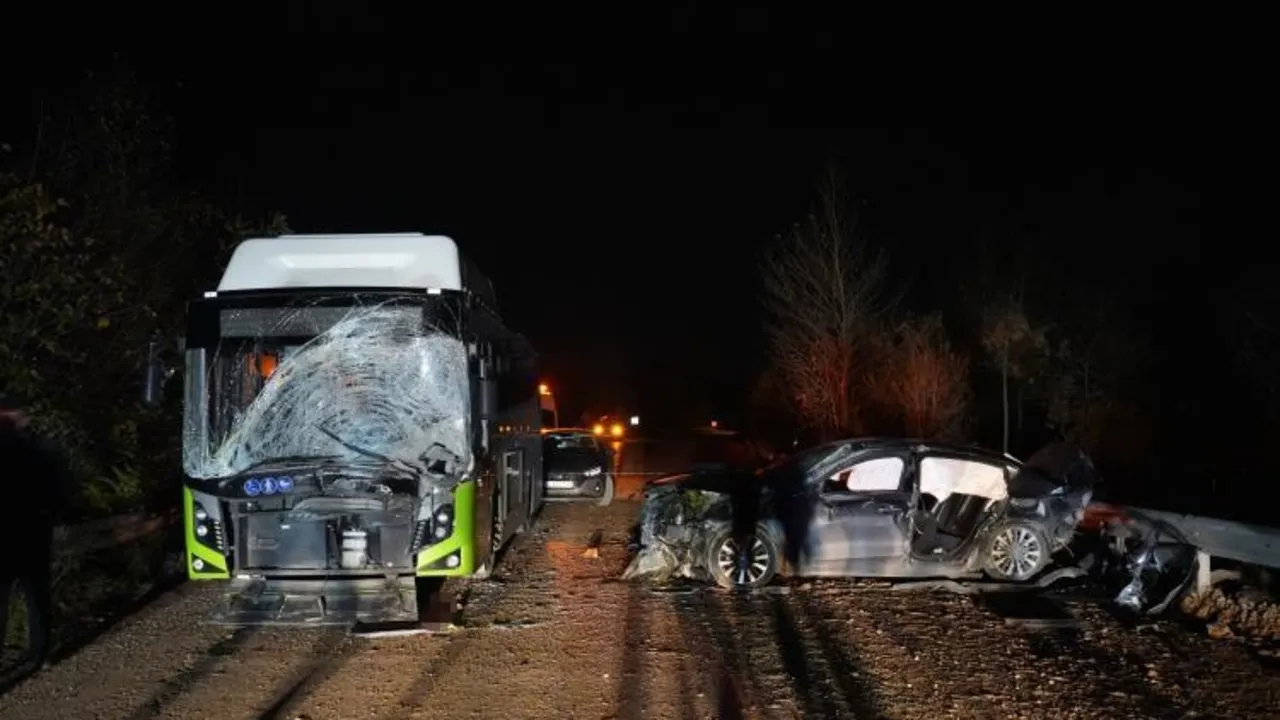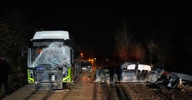Kocaeli'de korkunç kaza: Belediye otobüsüyle kafa kafaya çarpışan otomobil hurdaya döndü: 1 ölü, 2 yaralı