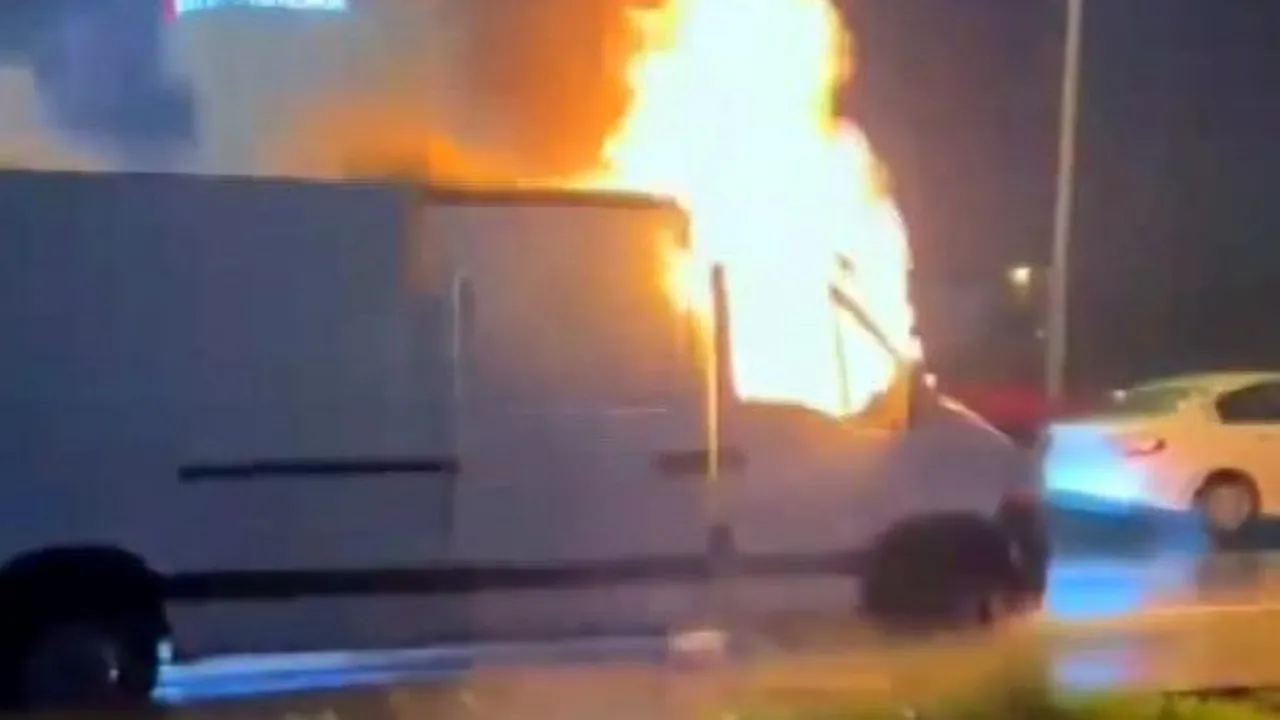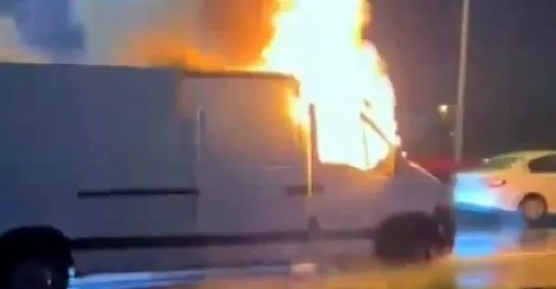 Avcılar'da korku dolu anlar: Seyir halindeki minibüs alev alev yandı