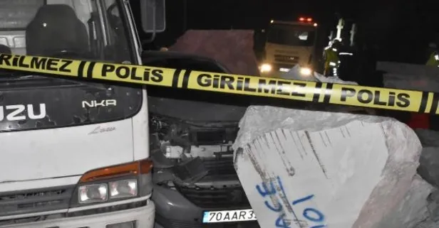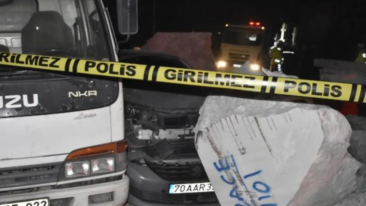 Yola savrulan dorsesindeki mermer blokları karşı şeritte bekleyen 1'i kamyonet, 5'i otomobil, 6 araca zarar verdi.