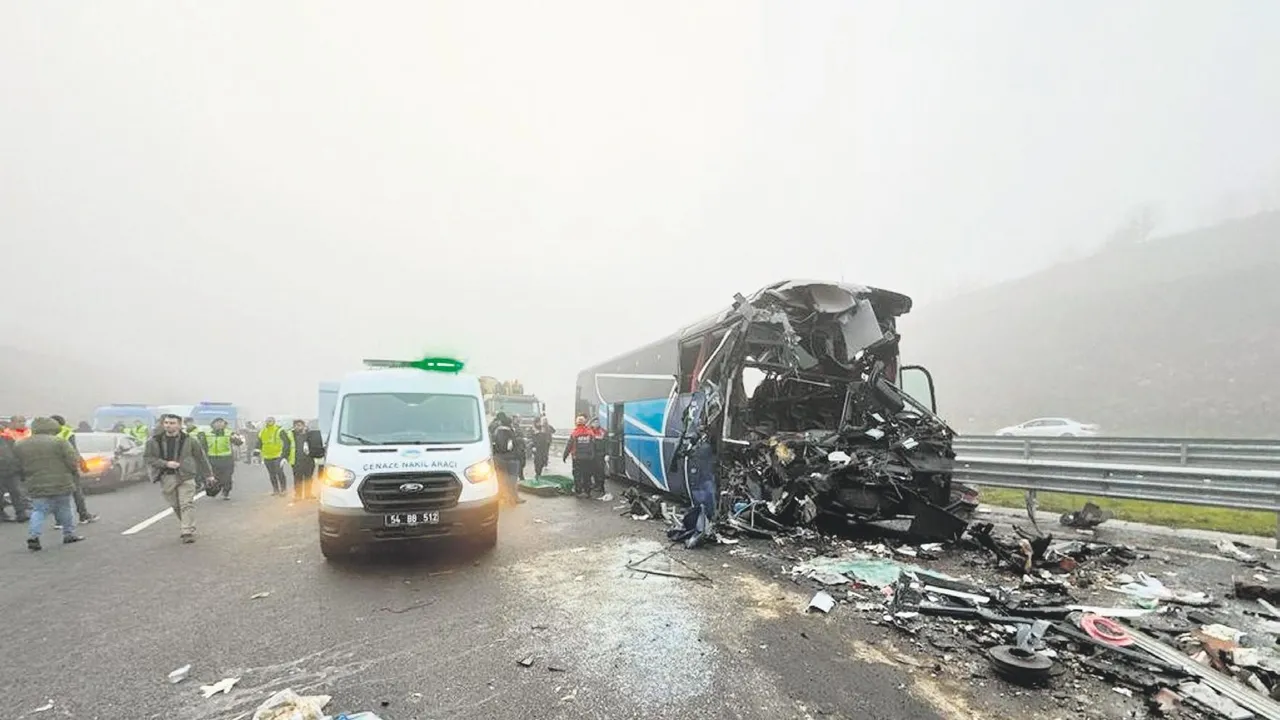 Kuzey Marmara Otoyolu'nda sis katliamı yaşandı. 3'ü otobüs biri TIR 7 araç zincirleme birbirine çarptı. 10 kişi hayatını kaybederken 61 kişi yaralandı.