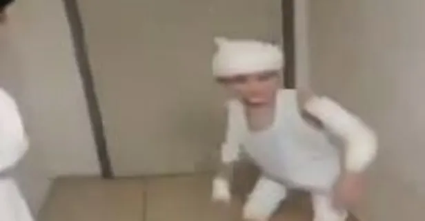 ATV'nin paylaştığı videoda, vücudunun bazı noktalarının sarılı olduğu görülen küçük çocuğun yürümekte zorlandığı görüldü.