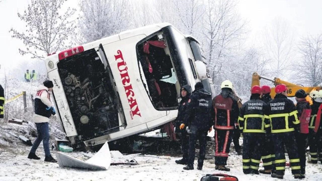 İstanbul-Sinop seferini yapan yolcu otobüsünün şoförü Orhan Çelik, dün sabah saat 05.50'de Kastamonu Alatarla mevkiinde buzlu yolda direksiyon hakimiyetini kaybetti. Araç, kontrolden çıkarak tarlaya devrildi. Niyazi Ersoy (73), Mevlüt Karakuş (63), Şerafettin Öz (70), Selfet Ersoy (69), Hikmet Sürücü (28) ve Naime Karakuş (61) hayatını kaybetti. 33 yaralı ise çevredeki hastanelere kaldırıldı. Yaralılardan 3'ünün durumunun ağır olduğu belirlendi. Yolun daha önce tuzlandığı ancak tuzun az düştüğü yerler olabileceği öğrenildi. Yolcu otobüsünde kış lastiği olduğu belirtildi.