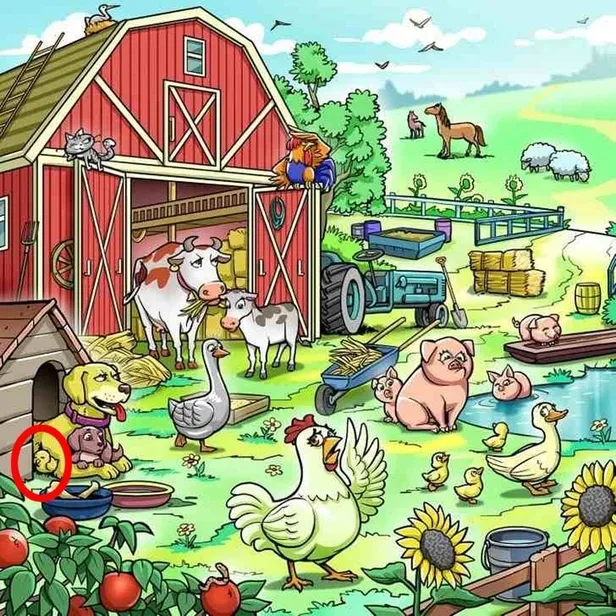Hazır mısınız? Şimdi başlıyoruz. Size ilginç bir bulmaca sunuyoruz, adeta bir çiftlik atmosferine yolculuk yapacaksınız. Bu özel çiftlikte inekler, koyunlar, atlar ve birçok sevimli çiftlik hayvanı bulunmaktadır. Ancak, sizin gerçek göreviniz, bu renkli ve hareketli çiftlik manzarasının içinde kayıp olan küçük civcivi bulmak. Bu bulmaca, özellikle dikkat ve hızlı gözlem yeteneği gerektiren bir zeka oyunudur. İddia edilenlere göre, zeki insanlar bu bulmacayı sadece 7 saniye içinde çözebilirler.