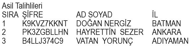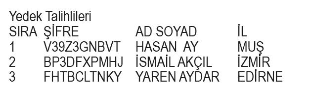 100.000 TL DEĞERİNDE PARAMKART KAZANAN YEDEK TALİHLİLER