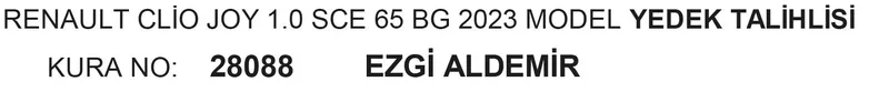 RENAULT CLIO JOY 1.0 SCE 65 BG 2023 MODEL KAZANAN ASİL TALİHLİ