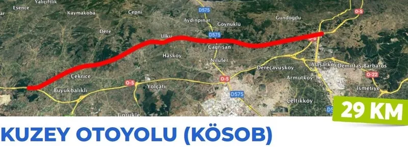 Bu oluşturdukları iki koridorun sağladığı rahatlığa ilave olarak Ulaştırma ve Altyapı Bakanlığı tarafından Kuzey Otoyolu'nun (KÖSOB) yapılacağını söyleyen Başkan Alinur Aktaş, "Bakanlığımız tarafından yapılacak 29 kilometrelik Kuzey Otoyolu, Bursa trafiğini rahatlatmada önemli bir rol üstlenecek."