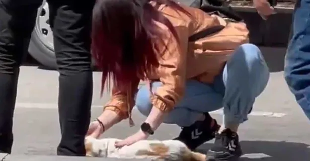 Kırşehir'de otomobilin çarptığı yaralı kedi, bölgeden geçen 38 yaşındaki Cansu Ünal'ın dakikalarca yaptığı kalp masajı ile hayata döndü. O anlar, çevredekilerin cep telefonu kameralarıyla kaydedildi.