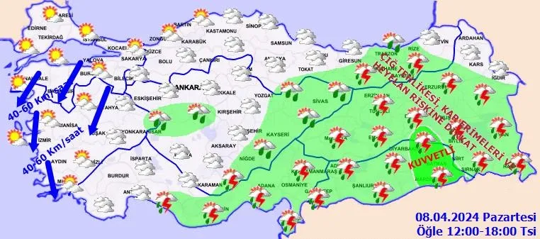 MGM tarafından yurt genelinde hava sıcaklığında büyük bir değişiklik beklenmezken kuzey ve kuzeydoğu kesimleri için kuvvetli rüzgar uyarısı yapıldı. Öte yandan Doğu Anadolu için ani sel, su baskını, yıldırım, erel dolu yağışlarının yaşanması durumunda da ulaşımda yaşanabilecek olası aksamalar için dikkat ve tedbir çağrısı yaptı.