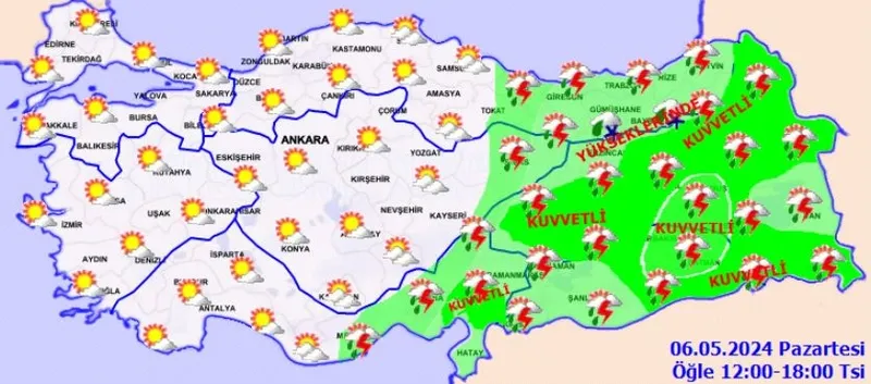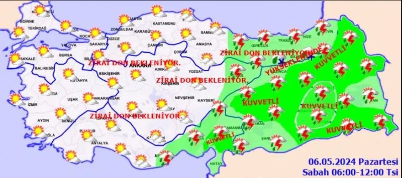 Öte yandan Meteoroloji, 6 Mayıs Pazartesi için 18 ile sarı kodlu uyarıda bulundu.