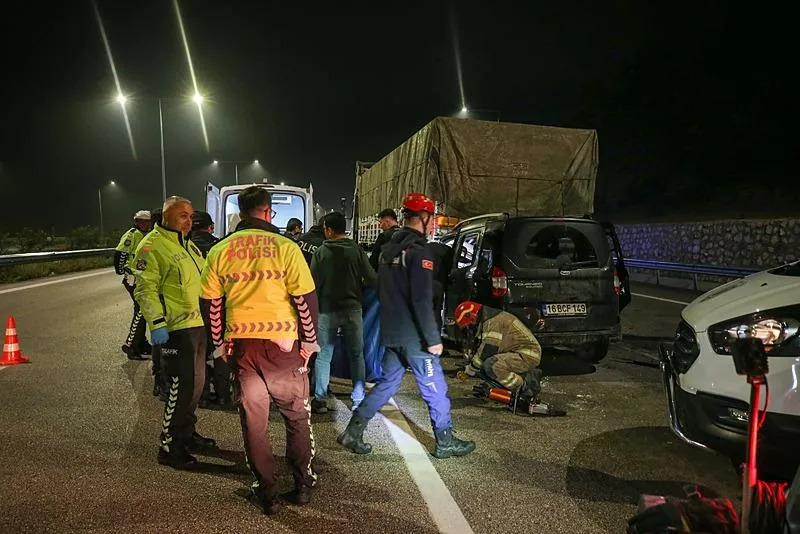 Son dakika haberi! Bursa'da, arızalanınca yol ortasında duran TIR'a arkasından gelen hafif ticari araç hızla çarptı. Hafif ticari araçta sıkışan sürücü İlhan Ulaş (43) olay yerinde hayatını kaybederken, TIR sürücüsü M.P. (24) ise gözaltına alındı.