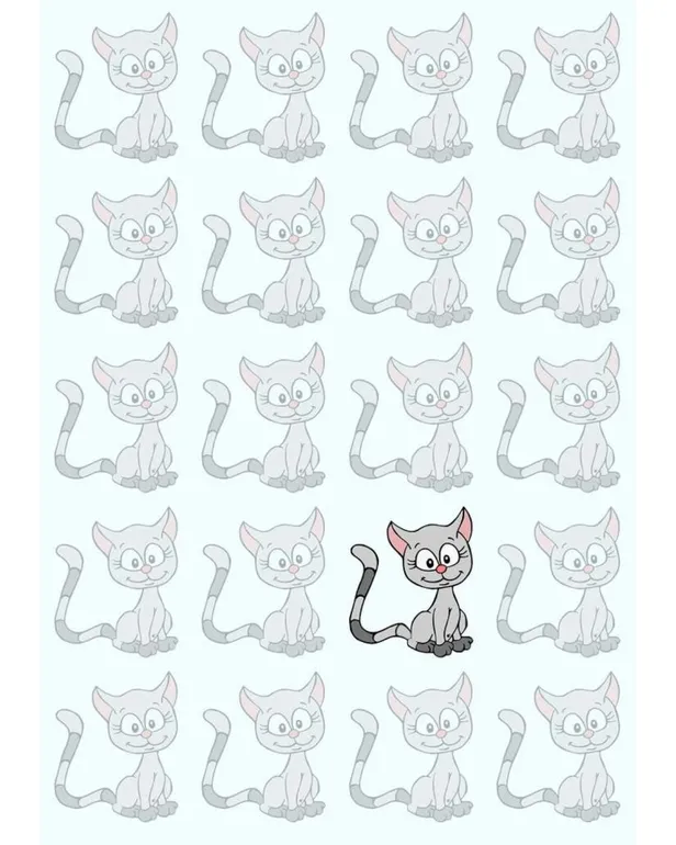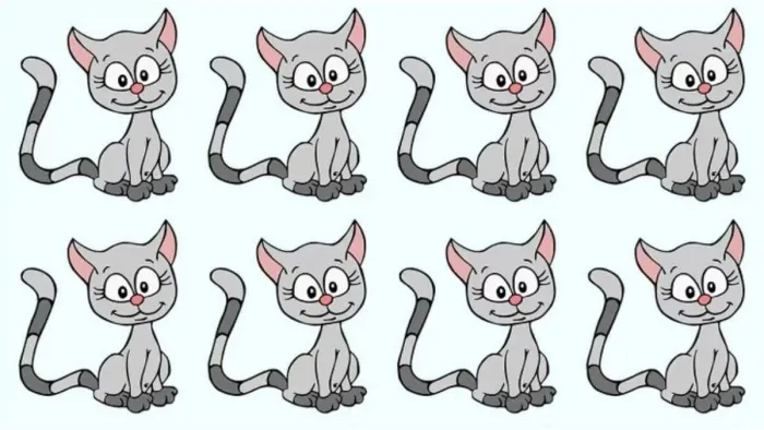 Bu görsel zeka oyununda, birbirine oldukça benzer bir grup kedi göreceksiniz. Bu kedilerin gözleri, burunları, ağızları, beden yapıları ve tüy renkleri aynı olacak fakat aralarından sadece bir tanesi diğerlerinden farklı. Farkı görebildiniz mi?