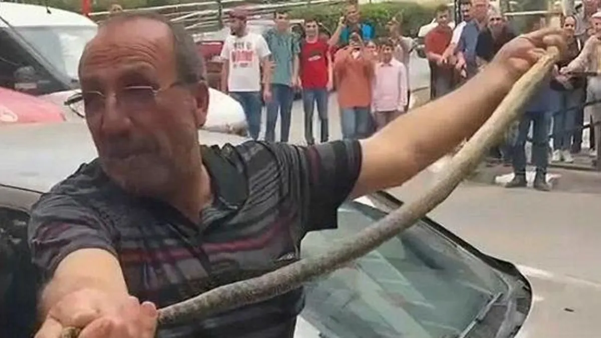 Manisa'nın Şehzadeler ilçesinde arabanın jantında yılan bulunduğunu fark eden vatandaşlar panik yaşarken, bir vatandaşın yılanı bulunduğu yerden profesyonelce çıkarması şaşkınlık oluşturdu.