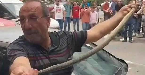 Cesur vatandaş ise çıkardığı yılana bakıp "Hay maşallah", diyerek yaklaşık 1 metre boyundaki hayvanın uzunluğuna dikkat çekti.