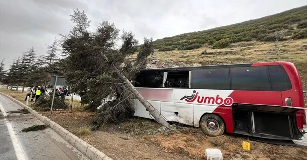 Isparta-Afyonkarahisar kara yolunda kaza! Yolcu otobüsü refüjdeki ağaca çarptı