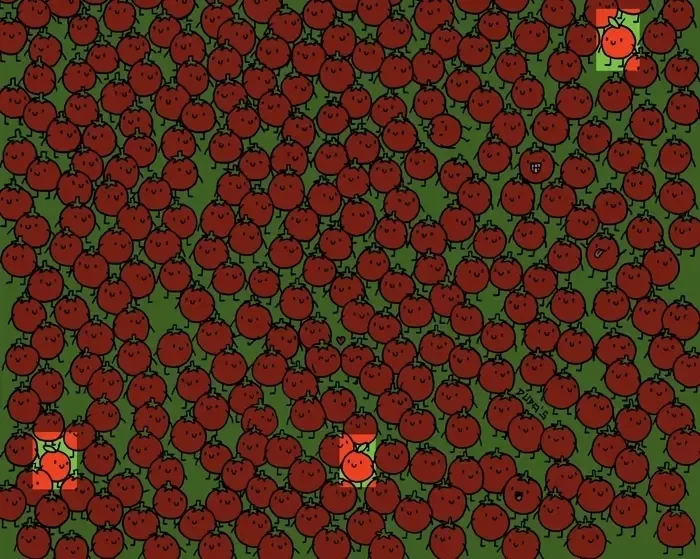 Bugün karşınıza zihninizi ve gözlem yeteneklerinizi zorlayacak bir görsel zeka bulmacası çıkıyor. Bu testte, bir grup domatesin arasında ustaca saklanmış üç çileği bulmanız gerekiyor. Görünüşte basit gibi görünen ancak dikkatli ve keskin gözlem becerilerinizi sınayan bu zeka oyunu, size tam anlamıyla yeni bir meydan okuma sunuyor. Göreviniz, detaylara odaklanarak bu kurnazca hazırlanmış bulmacayı çözmek.
