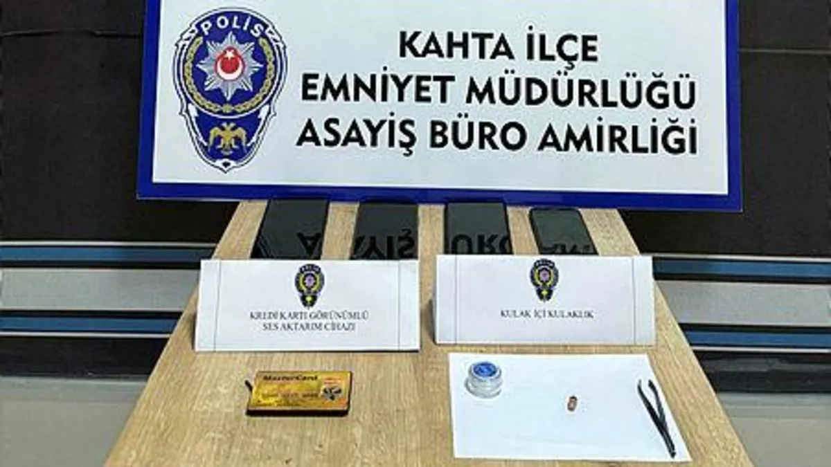 Kahta ilçe Emniyet Müdürlüğü ekipleri, ehliyet sınavı girişinde yapılan kontrolde E.T.'nin üzerinde düzenek olduğunu fark etti. Üzerinde elektronik düzenek bulunan E.T gözaltına alındı. Emniyette yapılan detaylı incelemede E.T.'nin üzerinden ses aktarımı cihazı, kulak içi kulaklık ve görüntü aktarımı için akıllı cep telefonu bulunduğu saptandı. Ekiplerin yaptığı araştırma sonunda şüpheli A.K. ve düzenek kurulumunu sağlayan F.K. de adreslerinde gözaltına alındı. Şüphelilerin adreslerinde yapılan aramada kurulumunda kullanıldığı değerlendirilen içerisi boş olan 1 kulaklık kutusu da ele geçirildi.