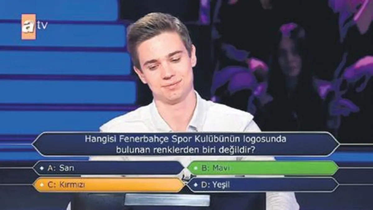 Kim Milyoner Olmak İster yarışmasındaki genç yarışmacı Fenerbahçe'nin rengini bilemedi!