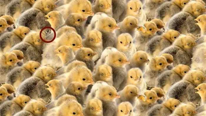 Civciv ve yavru kedi görseline dayanan bu optik illüzyon testinde birçok kişi başarısız oldu. Civcivlerin yoğunluğu ve bulunması gereken görselin gizliliği, bu testi zorlu kılıyor. Türkiye'de toplam 550 kişi tarafından denenen bu optik illüzyon testinde, sadece 19 kişi gizli görseli 8 saniye içinde tespit edebildi. Birçok civciv görseli arasında gizlenen yavru kediyi bulmak, neredeyse imkansız hale gelebiliyor.