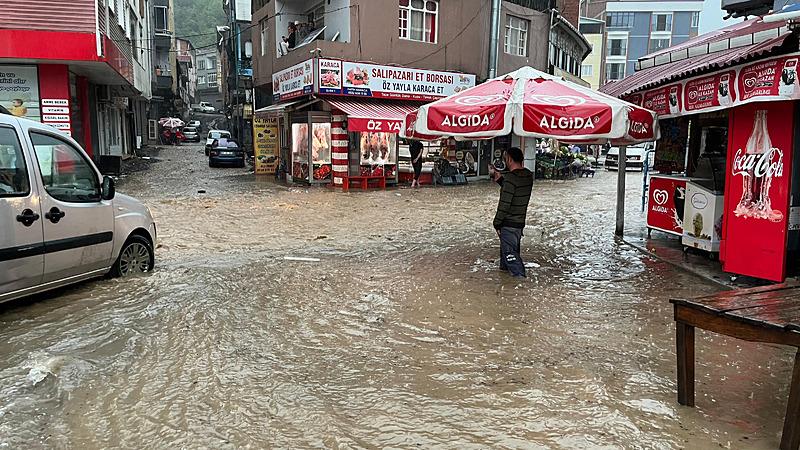Öğle saatlerinde başlayan şiddetli yağış, ilçe merkezinden geçen Terme Çayı'nın debisini yükseltti, cadde ve sokaklar ile iş yerlerini su bastı.