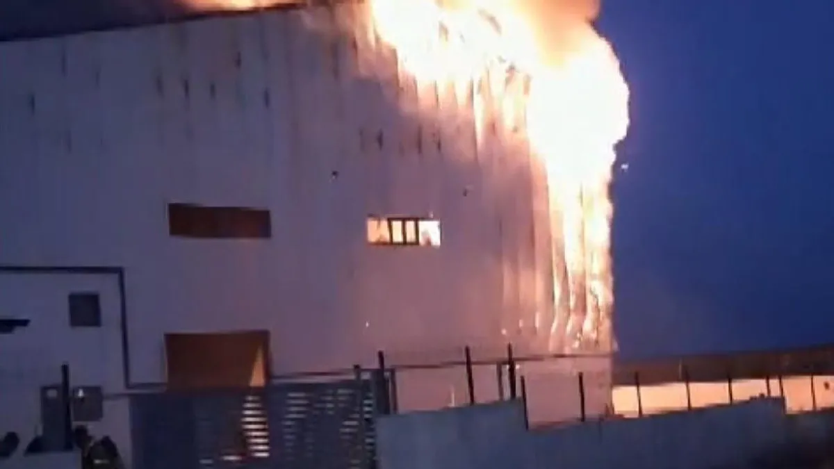 Yangın nedeniyle fabrikada hasar meydana geldi.
