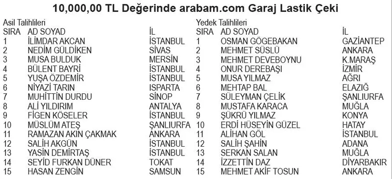 arabam.com Bireysel İlan Verenler Çekiliş Kampanyası Sonuçları belli oldu! İşte asil ve yedek talihliler...