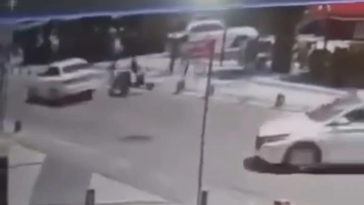 Kaza anı, bir iş yerinin güvenli kamerasına yansıdı. Görüntülerde, motosiklettekilerin yere düştüğü görülüyor. Sürücüsüz motosiklet, kaldırımdaki yayaların arasına dalıyor.