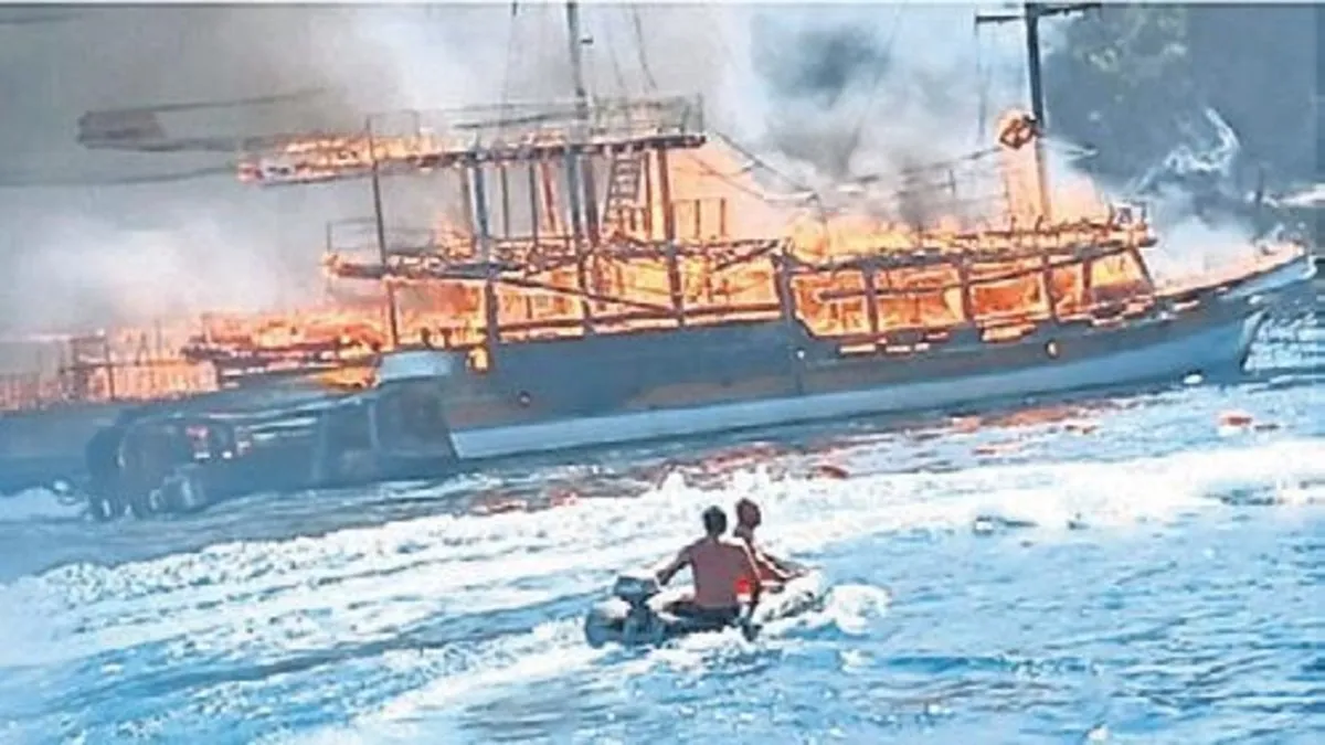 Marmaris'tetur teknesinde yangın çıktı. Yerli ve yabancı turistlerin bir kısmı panikle suya atladı. Olay yerine gelen Sahil Güvenlik ekipleri, vatandaşlar boğulmaktan kurtardı. Olay sırasında 110 kişi tahliye edilirken, 3'ü ağır 4 kişinin de yaralandığı açıklandı. Yapılan incelemede yangının makine dairesindeki yardımcı bir makineden çıktığı tespit edildi. Tekne sahibi Soner D. ve kaptan Emre K. gözaltına alındı. Soruşturma sürüyor.