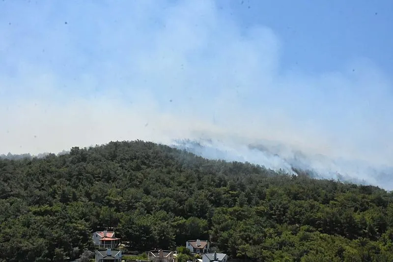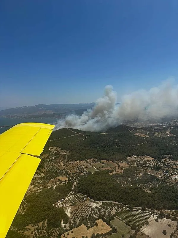 İzmir'in Urla ilçesinde orman yangını çıktı. Alevlere havadan ve karadan müdahale edilirken, 2 site tedbir amaçlı tahliye edildi.