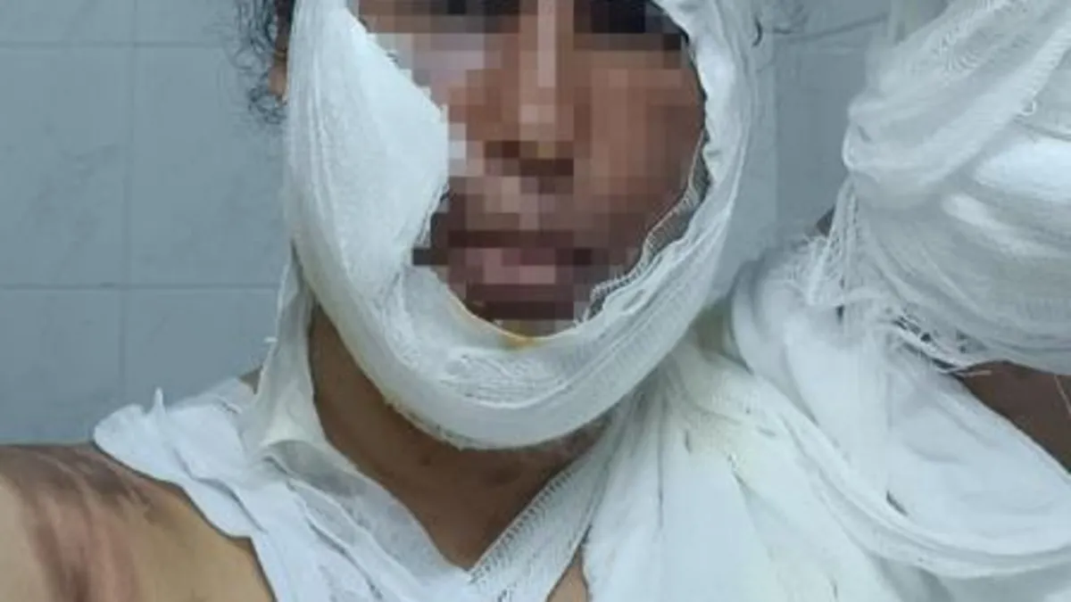 Yüzüne kaynar su dökülen genç kadın.