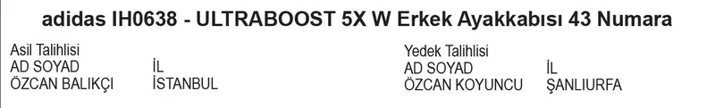 adidas IH0638 - ULTRABOOST 5X W Erkek Ayakkabısı 43 Numara kazanan ASİL ve YEDEK talihliler