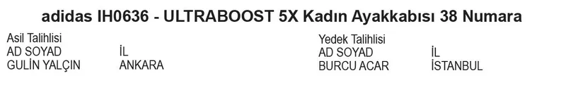 adidas IH0636 - ULTRABOOST 5X Kadın Ayakkabısı 38 Numara kazanan ASİL ve YEDEK talihliler