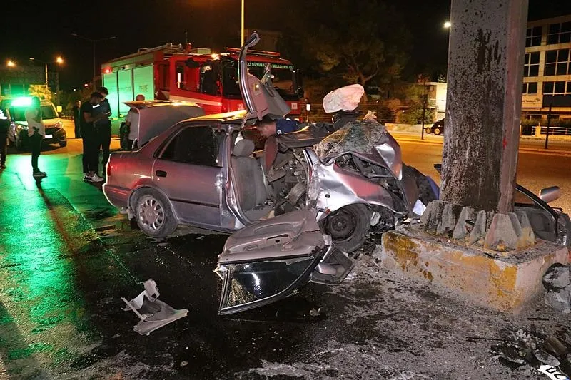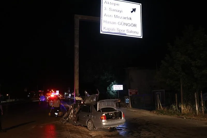 Denizli'de feci kaza! Yön tabelasına çarparak hurdaya dönen otomobilin sürücüsü öldü