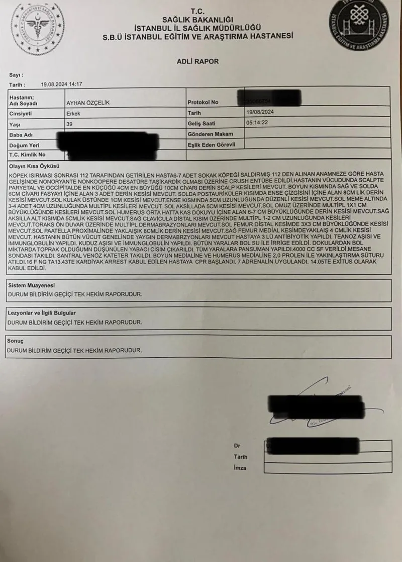 Fatih'te başıboş sokak köpekleri tarafından paramparça edilen Ayhan Özçelik'in adli raporu ortaya çıktı. Raporada vücudunun çeşitli yerlerinde saldırıya bağlı 4 ve 10 santimetrelik kesikler detayı dikkat çekerken, diğer detaylar kan dondurdu.