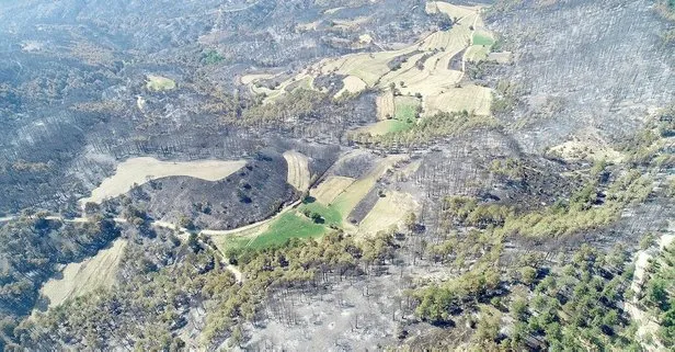 Yangının ardından hektarlarca alan küle döndü.