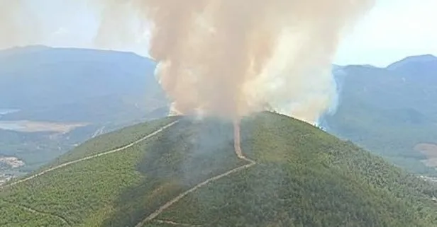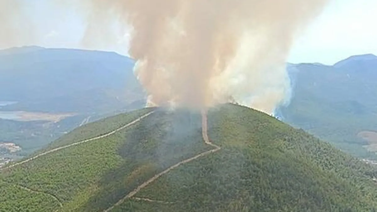 İhbar üzerine bölgeye İzmir Orman Bölge Müdürlüğü'ne ait 3 uçak, 8 helikopter, 29 arazöz, 10 su ikmal, 5 dozer ve 5 yer ekibi sevk edildi.