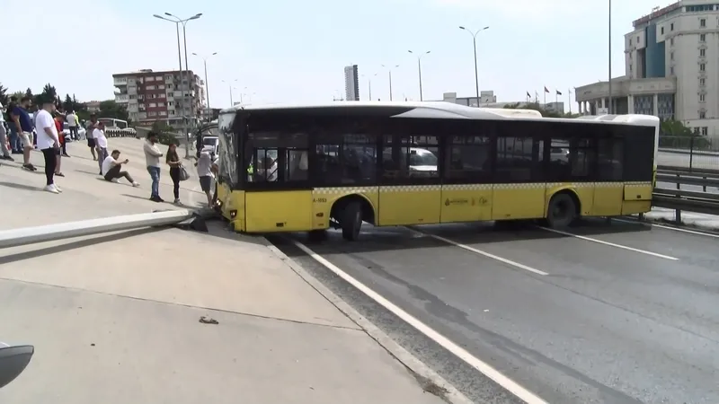 Avcılar'da E-5'te İETT kazası! Direğe çarptı yan döndü