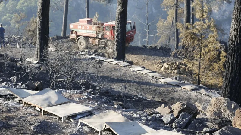 Ormanlık alanda başlayan yangın rüzgarın etkisi ile büyüyerek geniş bir alana yayıldı. Yangına havadan ve karadan müdahale edilirken, alevler geceyi gündüze çevirdi. O anlarda ise ayın hilal hali fotoğraf karelerine yansıdı. Ormanlık alanın ateş çemberine döndüğü anlarda hilal şeklindeki ayın görüntüsü dikkat çekti.