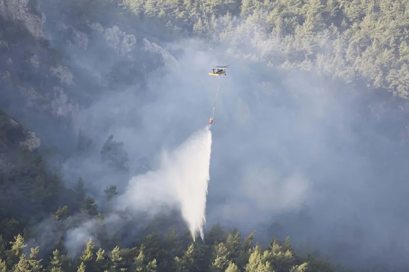 Havanın kararmasıyla birlikte gece görüşlü helikopterler yangının söndürülmesine destek olurken, kara ekipleri sarp arazilerde alevlerle mücadele ediyor. Yangına müdahale eden 1 orman işçisi dumandan etkilenip, ambulansa alınarak tedavi edildi.