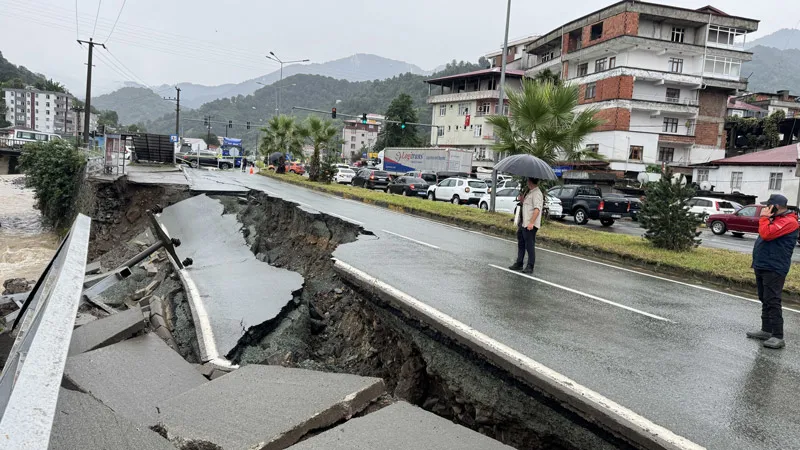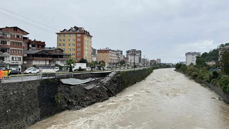 Meteoroloji Genel Müdürlüğü dün Doğu Karadeniz’i turuncu kodla uyarıp kuvvetli yağışın bu akşama kadar devam edeceği için sel ve su baskınlarına karşı dikkatli olunması gerektiğini bildirmişti. MGM’nin uyarılarının ardından Artvin Arhavi ilçesinde köy ile yaylalara ulaşım sağlayan asfalt yol çöktü. Kameralara yansıyan görüntüde Kapisre Deresi'nde su seviyenin yükselmesiyle alt kısmı boşalan yoldaki asfalt bloğunun aniden çökerek, sulara kapıldığı anlar yer aldı. Öte yandan bir çökme de Hopa'da meydana geldi. Meteoroloji'den yağışların ne kadar süreceği hakkında açıklama geldi.