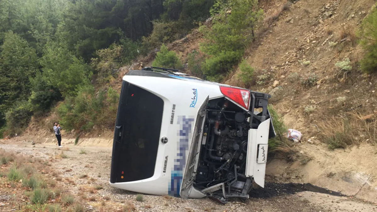 Burdur Bucak'ta yolcu otobüsü şarampole devrildi (DHA)