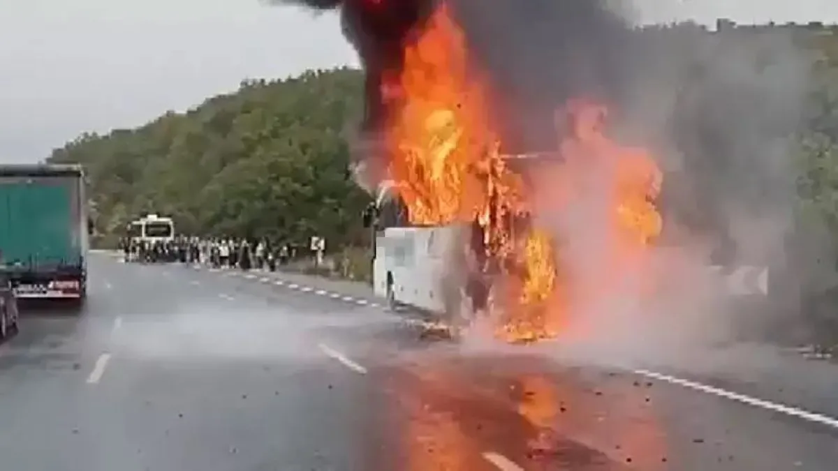 Bursa İnegöl'de yolcu otobüsü alev alev yandı! İçinde 35 yolcu vardı