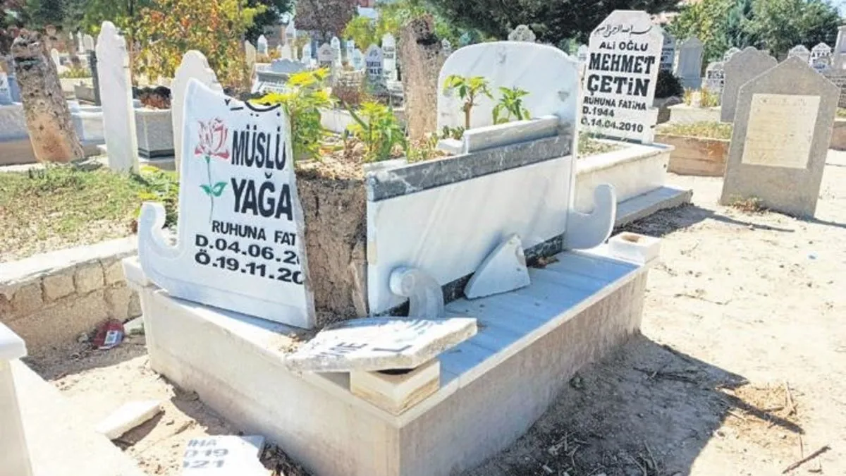 Müslüme'nin mezarındaki mermer kaplama kırıldı
