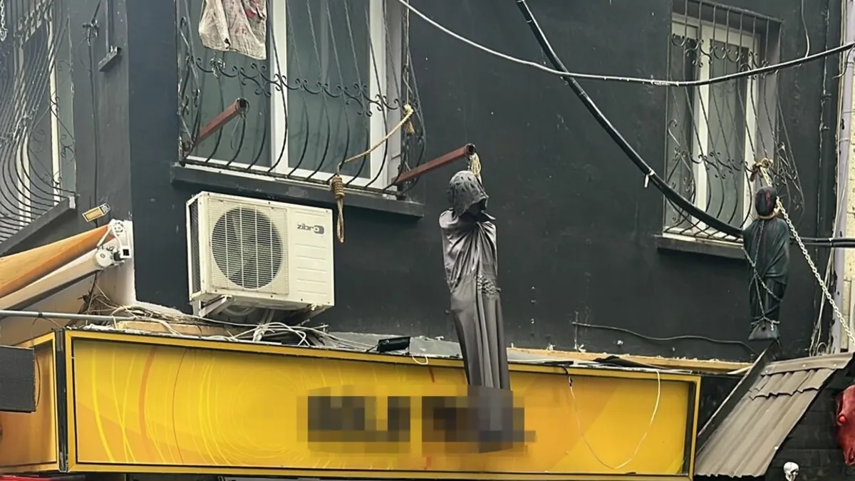 İzmir'in Konak ilçesi Alsancak semti 1485. Sokak'taki 'Azrail Köşkü Korku Evi' isimli işletmenin dış cephesine reklam amacıyla asılan bir kanlı baş, bir başı olmayan kanlı vücut maketi, bir kafatası, 3 korku mankeni, bir kanlı çocuk maketi, bir kanlı kol ve el maketi bir vatandaş tarafından cep telefonu ile kayda alınarak, sosyal medyada paylaşıldı.