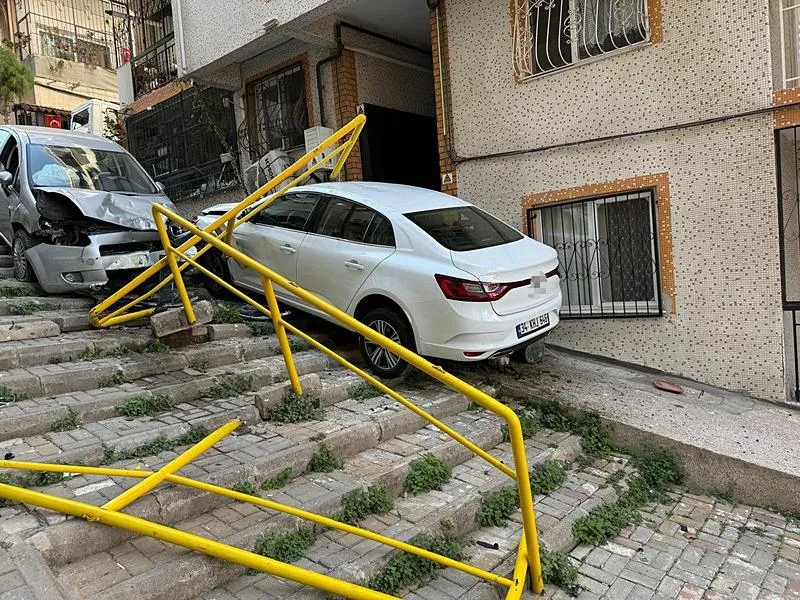 31 yaşındaki sürücünün kullandığı otomobil, çarptığı park halindeki başka bir araçla merdivenlere düştü.