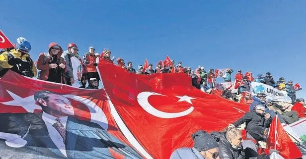 Dağcılar, uygun bir noktada TUSAŞ yazısı oluşturup şehitlerimizi andı. Sonra da 3 bin 723 metredeki Emler Zirvesi'ne ulaştı. Türk Bayrağı'nı açarak dünyaya mesaj yolladı: BU BAYRAK HEP ZİRVEDE KALACAK.