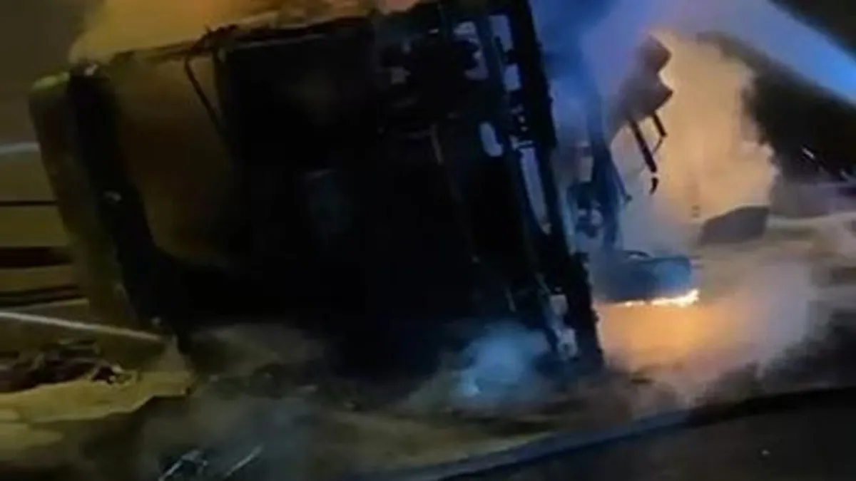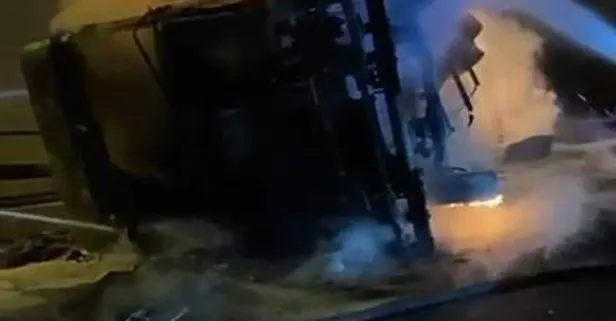 Otoyolda kaza yapan tır alev alev yandı: Sürücü hayatını kaybetti (DHA)