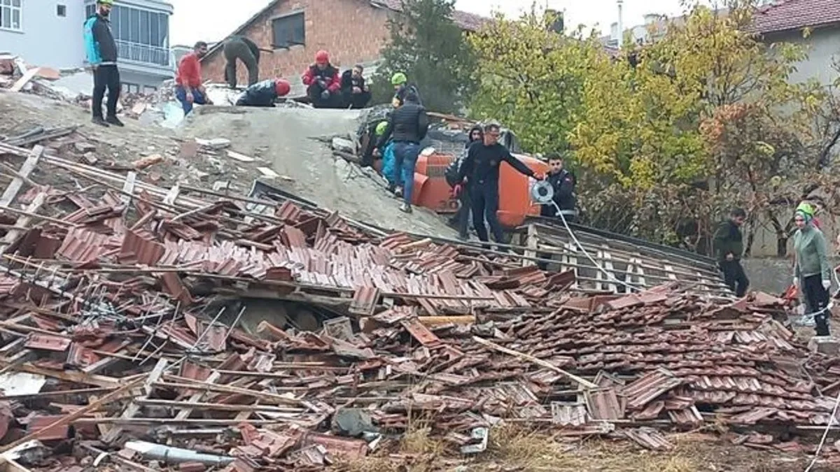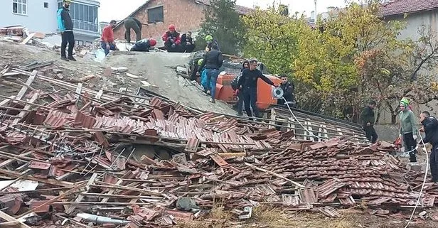 Yıkım sırasında henüz bilinmeyen nedenle bina iş makinesinin üzerine devrildi.
