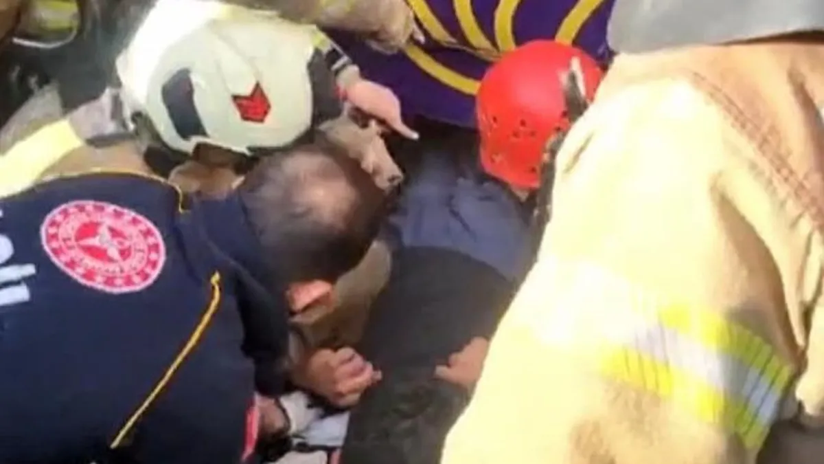 İtfaiye ekiplerince sıkıştığı yerden kurtarılan yaralı, sağlık görevlilerinin ilk müdahalesinin ardından hastaneye götürüldü.